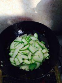 将角瓜切成片,放入开水中焯水,可以去除一部分苦味。
